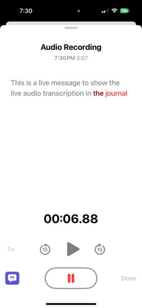 Tehát így használhatja az élő audio -átírást a hangfelvételekkel a folyóirat alkalmazásban az iPhone -on az iOS 18 -ban.