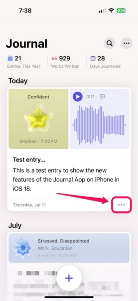Tehát most a felhasználók nemcsak az élet eseményeiről és anekdotákról írhatnak a folyóiratbejegyzésükben, hanem hozzáadhatnak egy lelkiállapot -naplót is, hogy kifejezzék, hogyan érzik magukat. Ez hozzáad egy extra réteget a továbbfejlesztett folyóirat alkalmazás bejegyzéséhez az iOS 18 -on.