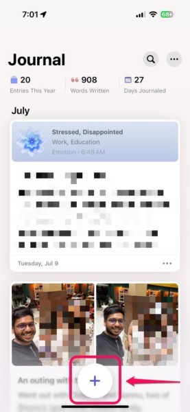 1.A folyóirat alkalmazáson belül érintse meg a+ gombÚj bejegyzés létrehozásához.
