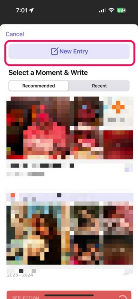 Tehát, ha hozzáadja a Fotók Widget -t a folyóirat alkalmazáshoz az iPhone zár képernyőjén, akkor megcsapja egy új bejárati oldalt, amelyben a benne megnyitott felhasználói felület. Innentől gyorsan kiválaszthatja azokat a fényképeket, amelyeket hozzá szeretne adni a naplóbejegyzéshez.