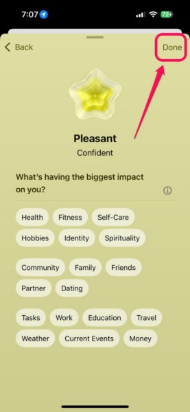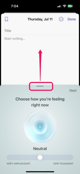 9.Végül érintse meg aKész gombA lelkiállapot naplózásához a naplóbejegyzésben.
