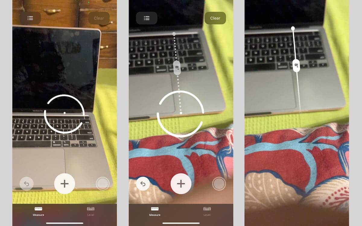 Az iPhone 12 Pro-nál régebbi iPhone-modellek tulajdonosai a Measure alkalmazással vonalakat rajzolhatnak, és megbecsülhetik a hosszt vízszintes és függőleges méretekben.