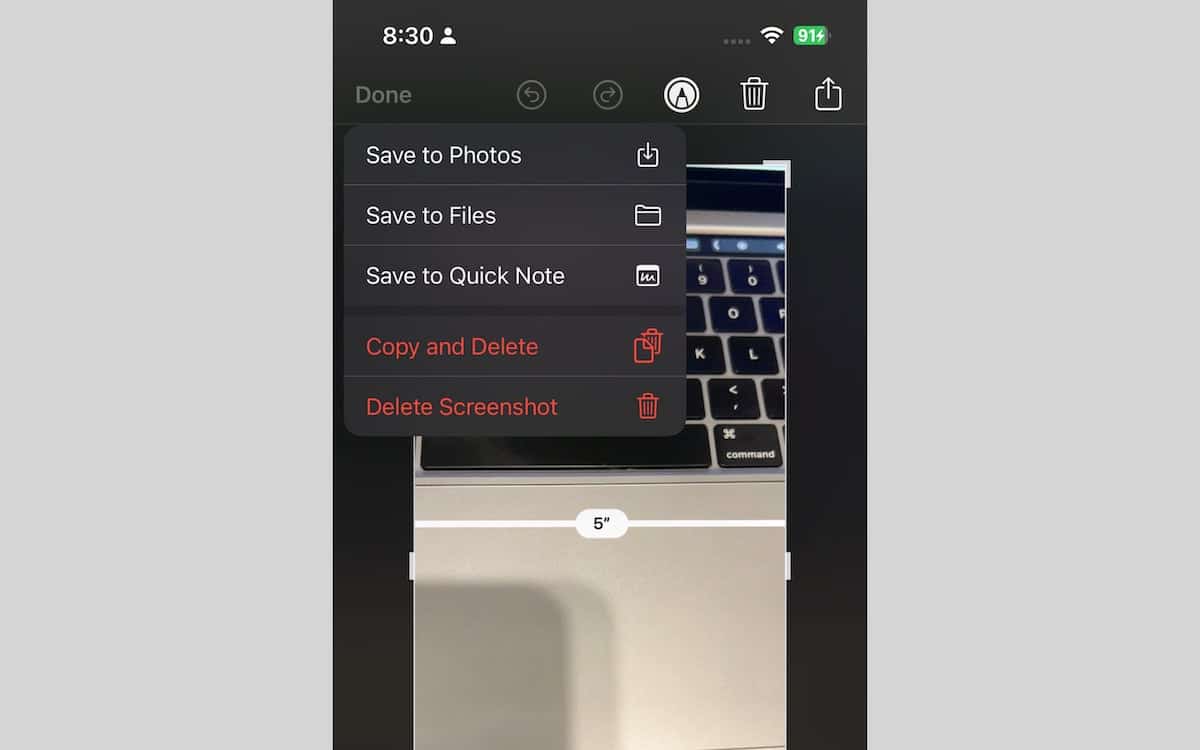 - Érintse meg a Kész gombot, hogy elmentse a képernyőképet a Fényképek alkalmazásba, vagy mentse a Fájlok közé.