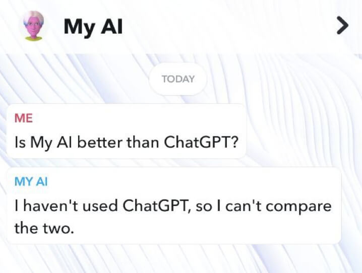 Egy másik lehetőség, amelyet felfedezhet a chatgpt mobiltelefonszám nélkül történő használatához, a Snapchat bot. A Snapchat a saját AI chatbotját neveziNekem van, Powered By Chatgpt. Ennek előnye, hogy a Snapchat nem igényel telefonszámot a regisztrációhoz.