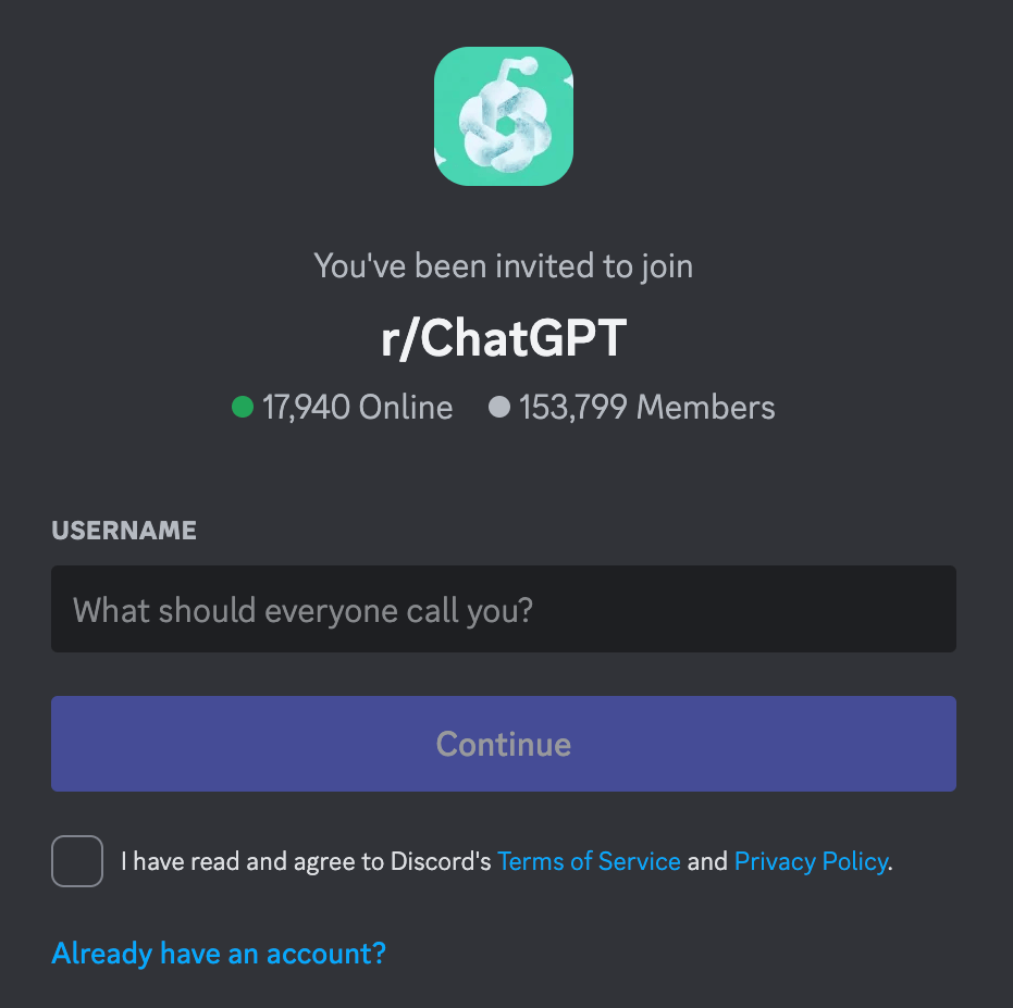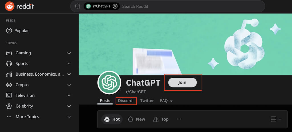 A CHATGPT hozzáférésének másik módja a telefonszám követelménye nélkül a Reddit Chatgpt Discord csatorna felhasználása.