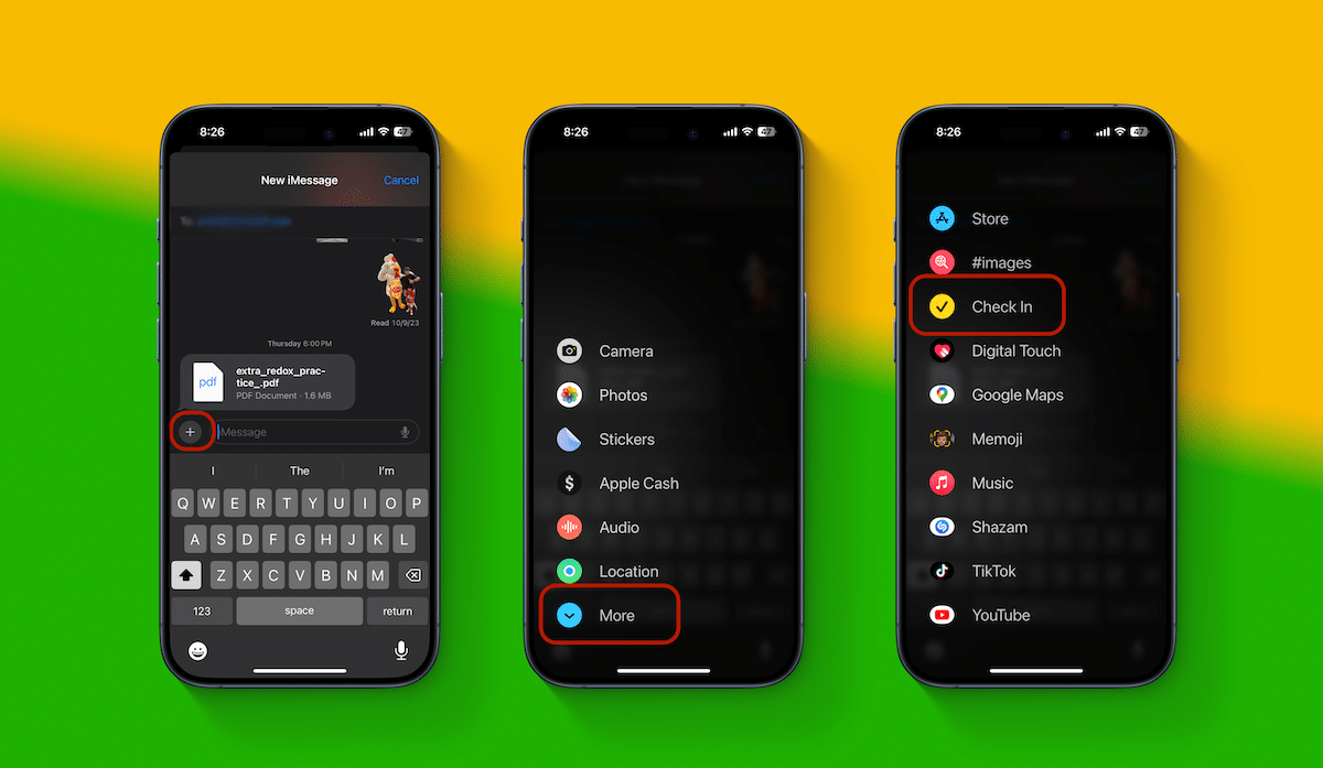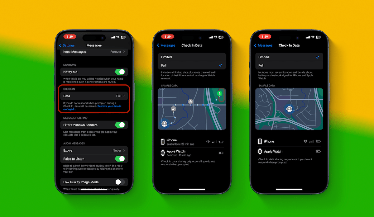 Az iOS 17 -ben az Apple bevezetett egy új biztonsági funkciót, melynek címe: 'Check Ins' az Üzenetek alkalmazásban. A felhasználók elküldhetnek egy bejelentkezést, hogy tudatják családjuk vagy barátaikat, amikor automatikusan megérkeztek a rendeltetési helyükhöz.