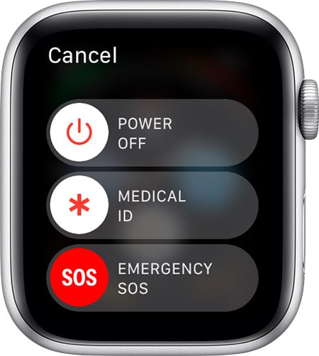 - Nyomja meg és tartsa lenyomva az óra oldalsó gombját (a Digital Crown alatti gombot), amíg meg nem jelenik az Emergency SOS csúszka.