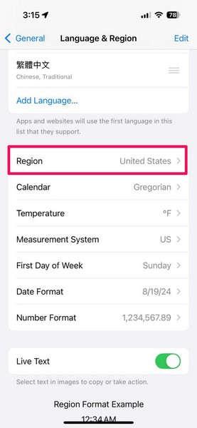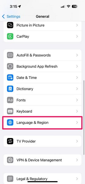Ezenkívül az élő audio transzkripciós funkció használatához az iPhone támogatott alkalmazásaiban be kell állítania az eszköz elsődleges régióját, hogy megfeleljen a támogatott nyelvnek. Ezt megteheti a következő lépések felhasználásával: