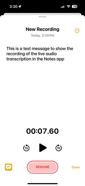 Most, miután elmenti a hangfelvételt, és hozzáadja azt a jegyzethez a Notes alkalmazásban, további audio -transzkripciós funkciókat használhat az alábbi lépéseket követve: