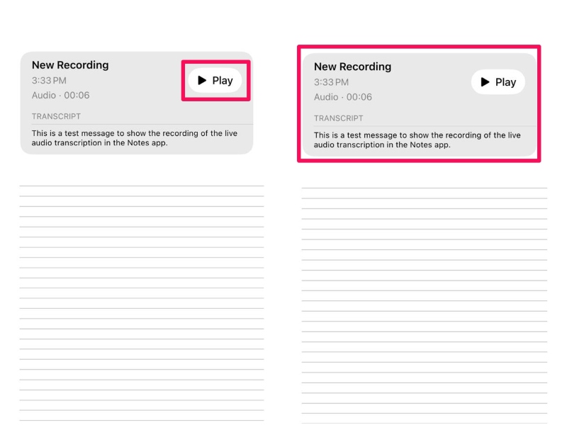A felvételek audio -átírása automatikusan generálódik, amikor a hangjegyzés felvételét elkezdi a Notes alkalmazásban vagy a Voice Memos alkalmazásban az ioS 18 -at futtató iPhone -on. Ilyen módon a hangjegyzet rögzítése közben nemcsak élő nézetet kaphat az audio transzkripcióról, hanem a felvétel befejezése után is megtekintheti a szöveget.