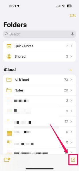2.Érintse meg aÚj jegyzetgomb a képernyő jobb alsó sarkábanHozzon létre egy új jegyzetet-
