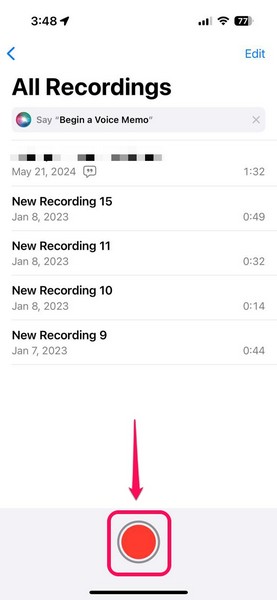 Az élő audio transzkripciós funkció használata a Voice Memos alkalmazásban hasonló a Notes alkalmazásban. Tehát kövesse az alábbi lépéseket az alábbiakban, hogy megtanulja, hogyan kell használni az említett funkciót az iPhone 18 -án a Voice Memos alkalmazásban, az iOS 18 -ban: