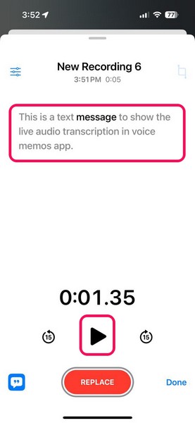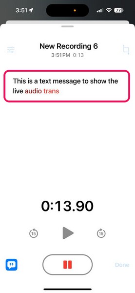 5.Ilyen módon képes leszTekintse meg a valós időben generált audio transzkripciótAhogy rögzíti az audio klipet.