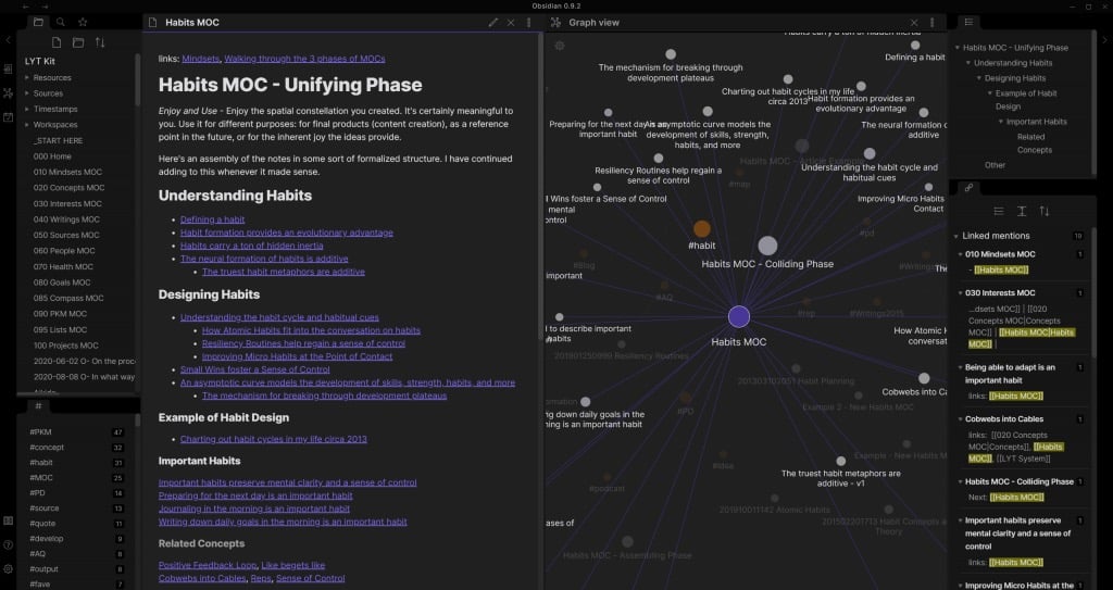 Az Obsidian lehetővé teszi saját wiki létrehozását összekapcsolt csomópontok hálózatával, lehetővé téve, hogy gondolatait (vagy kutatásait) természetesebb formátumba rendezze. Számos „agytérképező” alkalmazás létezik, amely már ezt teszi, de egyik sem olyan tiszta és egyszerűen használható, mint az Obsidian.