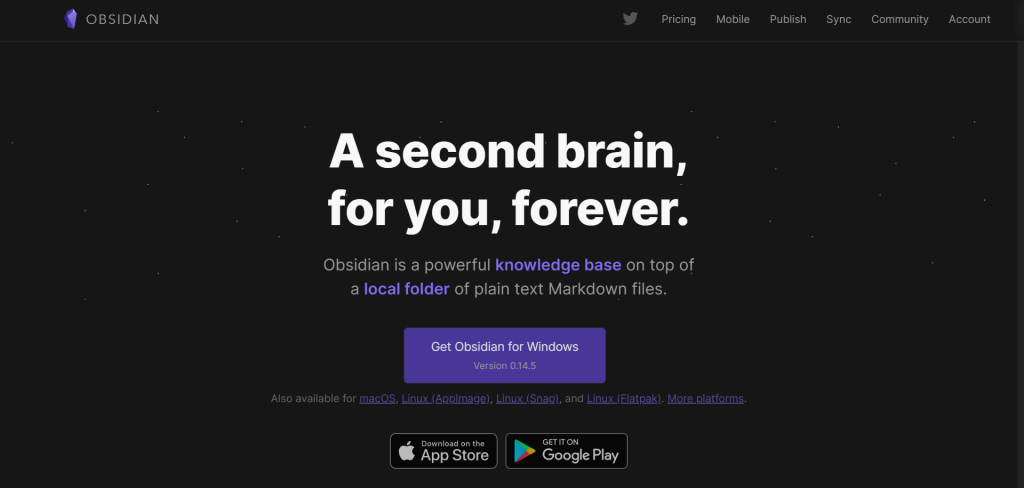 - Először töltse le az Obsidian-t a hivatalos webhelyről. Van egy telepítő a Windowshoz, valamint a Machez és számos Linux disztribúcióhoz. A mobilfelhasználók a Google Play Áruház és az Apple App Store oldalán telepíthetik az Obsidian-t okostelefonjukra.