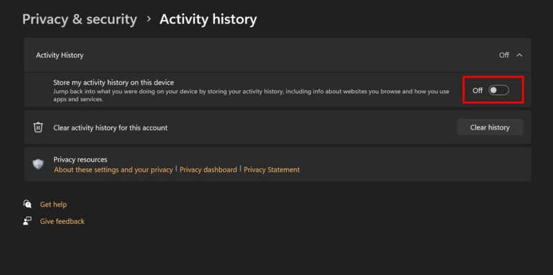 Hogyan lehet kikapcsolni és törölni a tevékenységek előzményeit a Windows 11 -en?