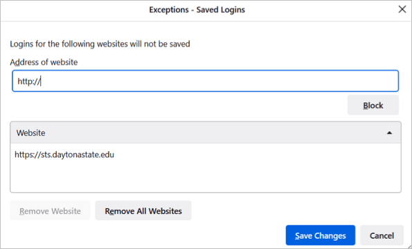 Megtekintheti, szerkesztheti és hozzáadhatja kivételeket a beállítások ugyanazon területén, ahol engedélyezte a jelszó mentése funkciót.