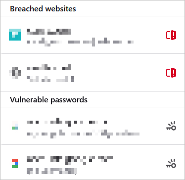 Az ikonokat is láthatja a weboldal bejelentkezése mellett. Az alábbi példák szerint a megsértett webhelyek és a kiszolgáltatott jelszavak mutatnak egy mutatót, hogy cselekedjenek.