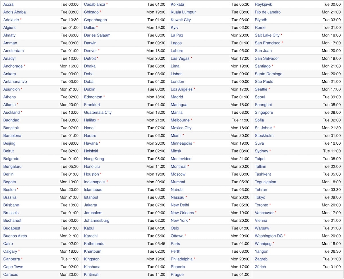 Átalakítottuk az 17:00 csendes -óceáni időt a világ népszerű városaiban elérhető helyi időké. Vessen egy pillantást az alábbi helyi időzónára, vagy nézze meg a teljes listátitt-