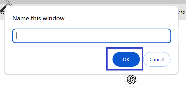 4. Megjelenik egy párbeszédpanel, ahol egyéni nevet írhat az ablaknak. Adjon meg egy választott nevet, majd kattintson az OK gombra.
