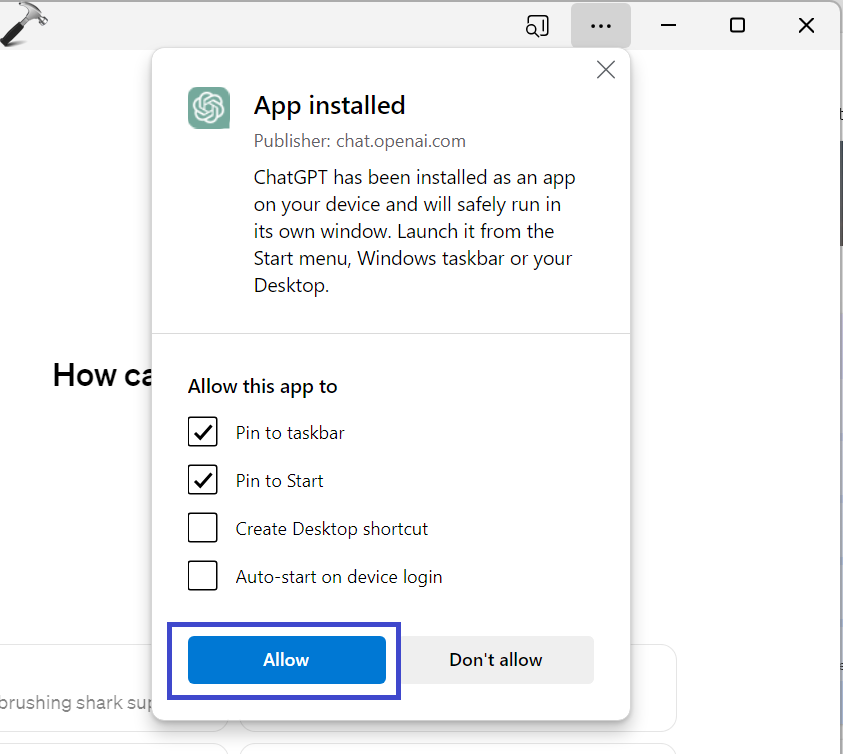 Két egyszerű módszer a ChatGPT alkalmazásként történő telepítésére Windows 11/10 rendszeren: