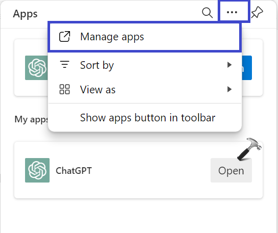 2. Most kattintson a gombra(…)ismét, és válassza ki a „Alkalmazások kezelése” opciót.