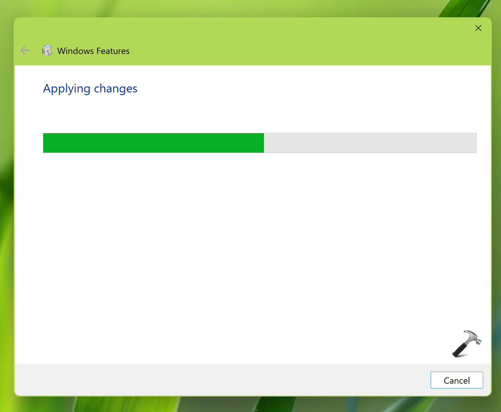 3. Most a Windows elkezdi alkalmazni a változtatásokat.