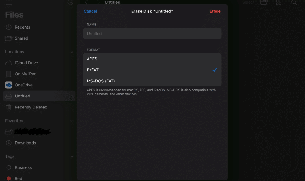 Az Apple legújabb szoftverfrissítései három fő meghajtó formátum támogatását mutatják be: APFS (Apple File System), ExFAT és MS-DOS (FAT). Az APFS opción belül a felhasználók választhatnak a kazinérzékeny és titkosított formátumok között is, robusztus biztonságot és testreszabást kínálva. Ezek a lehetőségek akkor érhetők el, amikor a felhasználók csatlakoznak egy külső meghajtóhoz, és válassza ki a „Törlés” funkciót a meghajtó kötetének hosszú nyomására a Fájl alkalmazásban.