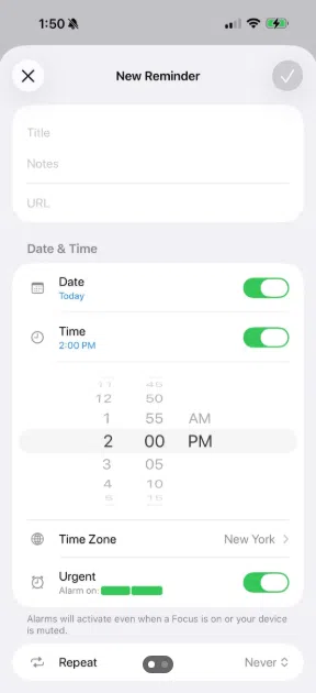 Az Emlékeztetők alkalmazás mostantól támogatja a sürgős feladatokhoz tartozó riasztásokat. Ha egy emlékeztetőt „Sürgős”-ként jelöl meg, az iOS riasztást indít el a lezárási képernyőn a Szundi és a Leállítás lehetőségekkel, hasonlóan az ébresztőórához. Finom, de praktikus kiegészítés az időérzékeny feladatokhoz, mint például a gyógyszerszedés vagy a híváshoz való csatlakozás, így gyors műveleteket tesz lehetővé az alkalmazás megnyitása nélkül.