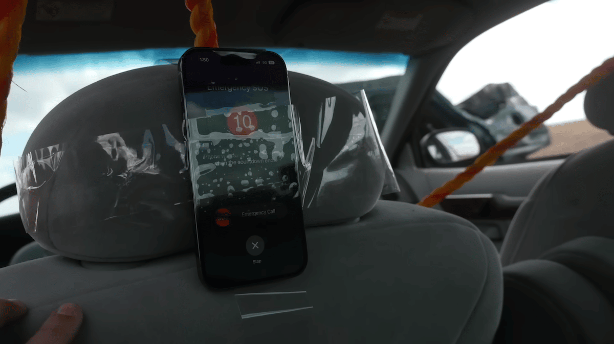 A kísérlethez a YouTuBers@TechraxKipróbálta az ütközés -észlelési funkciót az iPhone 14 Pro -n, egy régi autóval nyitott mezőben. Megkapták a telefont a vezetőülés hátulján, és távolról vezették az autót selejtezett autókba.