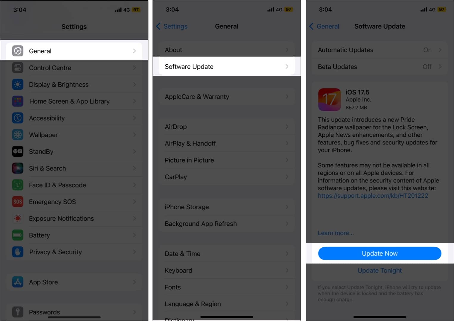 Az elavult iOS néha összeegyeztethetetlenség problémákat okozhat. Győződjön meg arról, hogy iPhone -ja frissül az iOS legújabb stabil verziójára, mivel az új frissítések hibákat tartalmaznak.