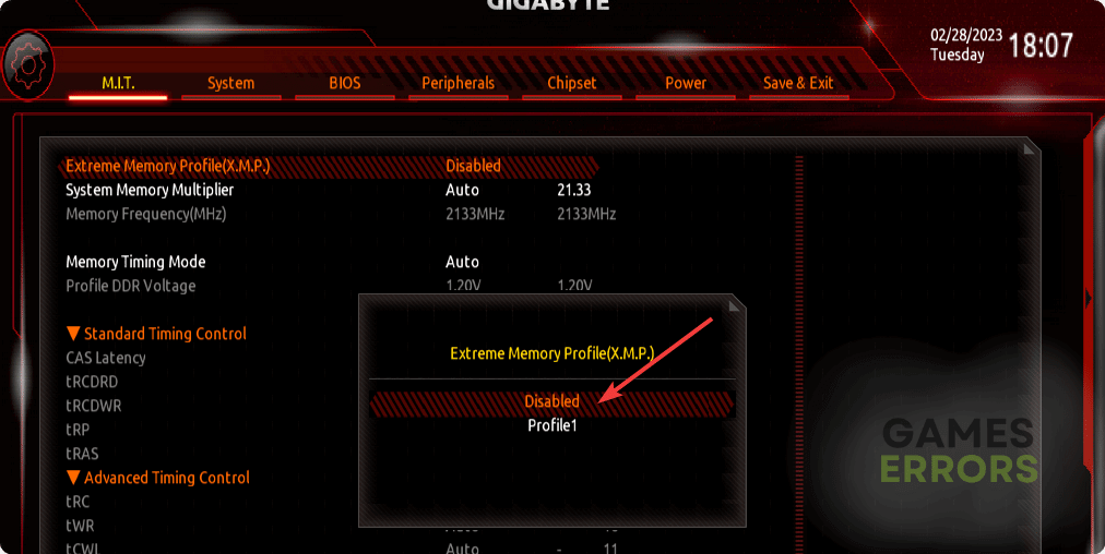 5. Ezután keresse meg aExtrém memóriaprofil (XMP)és tiltsa le.