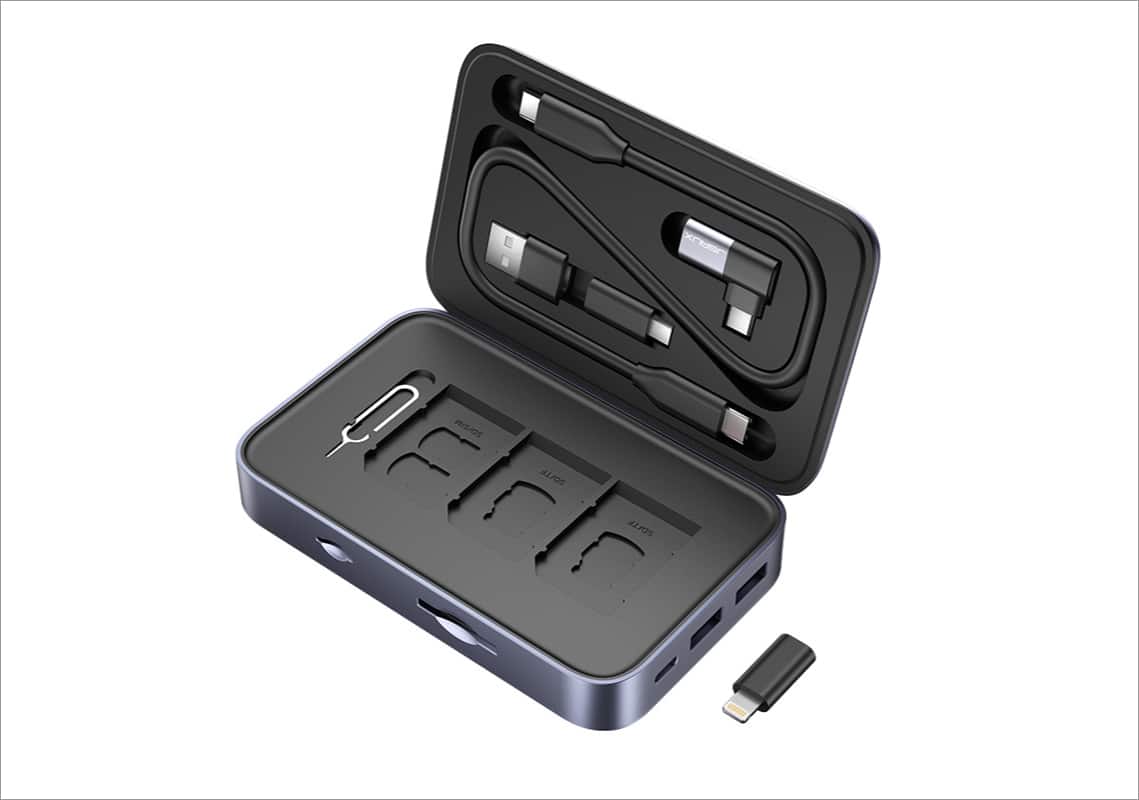 Ha gyakran utazik, problémásnak találhatja a kábelek és SD-kártyák rendszerezését, valamint dokkoló állomást a portokhoz. Bár különféle dokkolóállomások és szervezők állnak rendelkezésre a piacon, mindkettő szállítása plusz súlyt jelentene a vállára.