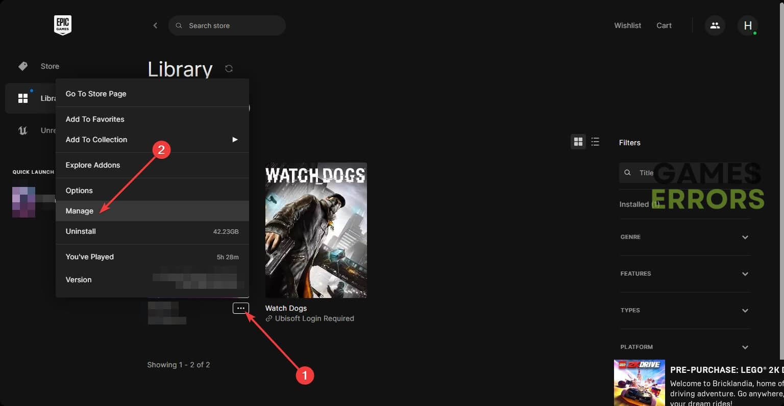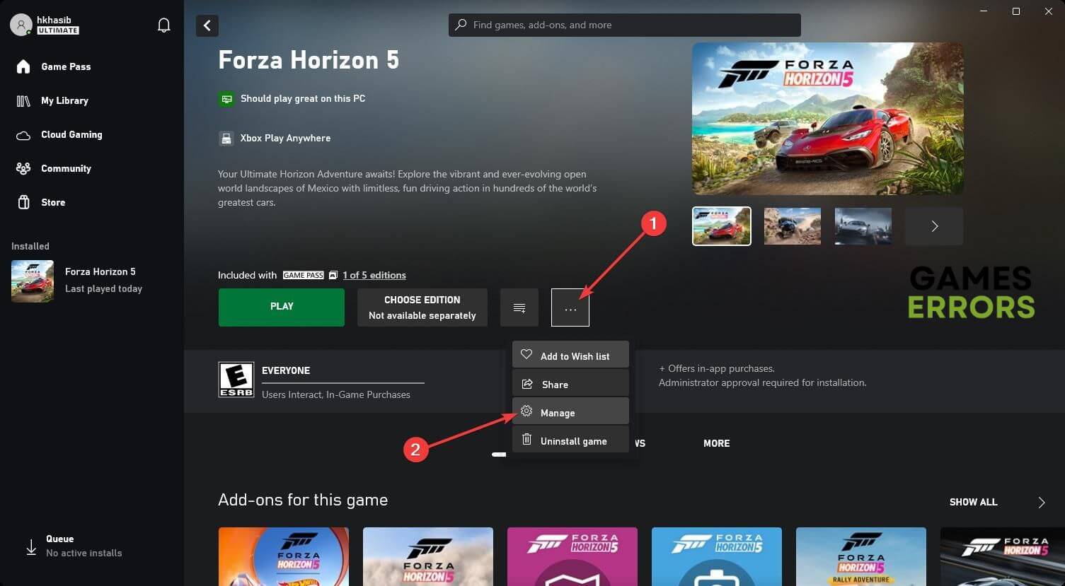 - Keresse meg a problémás játékot, és kattintson aHárom vízszintes pontÉs akkor kattintson a KattintsonKezel-