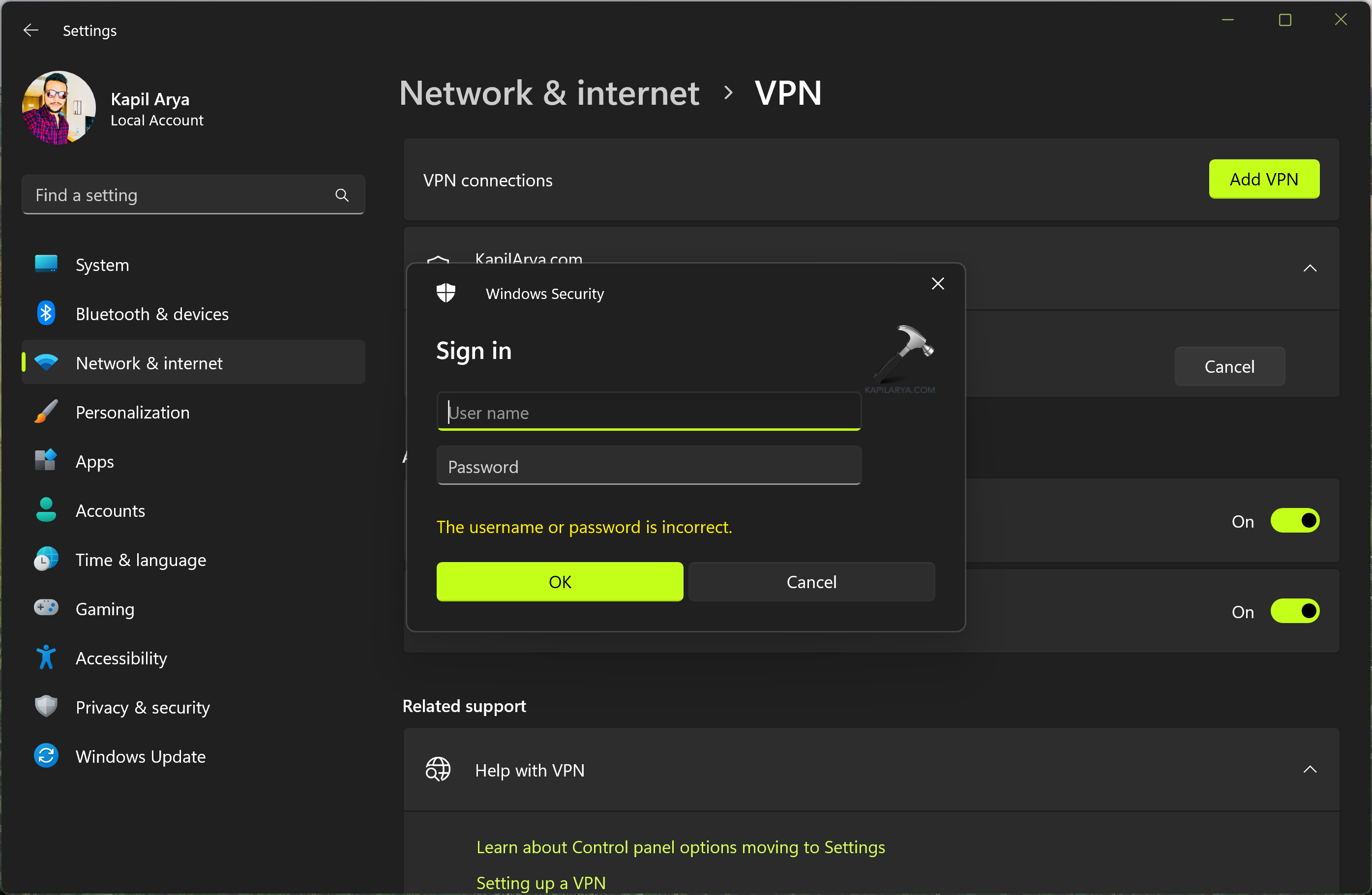 Lásd ezt a bejegyzést, ha a Windows 11 VPN nem működik.