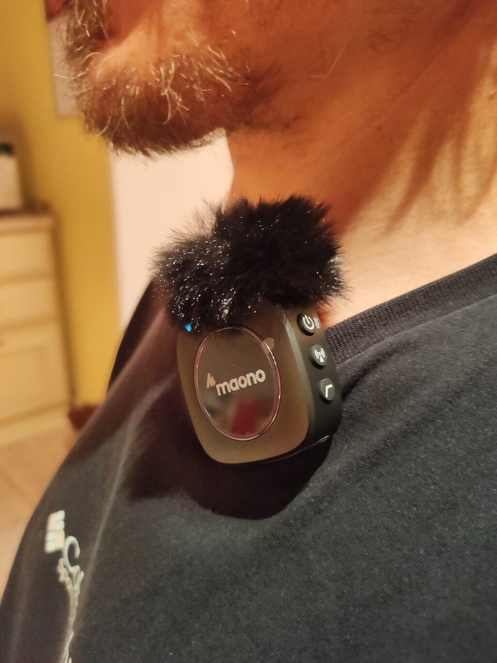 Minden adó beépített mikrofonnal rendelkezik (omnidirectional), tehát nem kell LAV mikrofont rögzítenie a felvételhez. Ha azonban inkább egy külső mikrofont használ, akkor két Lavalier mikrofon szerepel a Maono készletben.