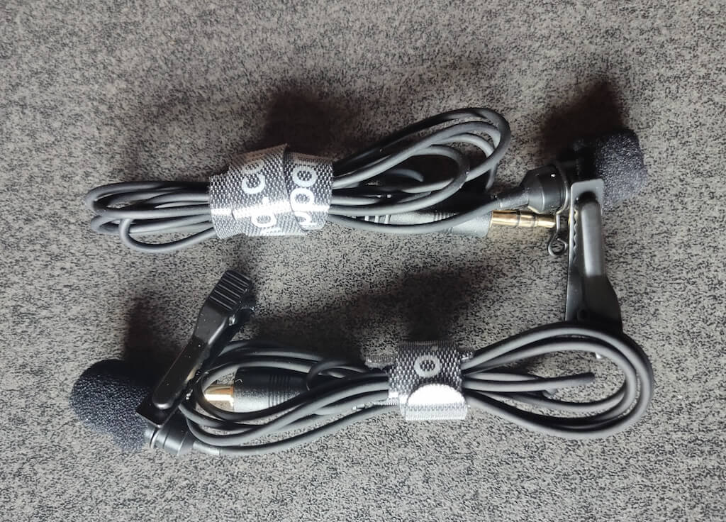 Ha nem tetszik, hogy az adó hogyan néz ki a kamerán (különösen a bolyhos védőnel), akkor a rögzítéskor használhatja a külső hajtófoltos mikrofonokat (vagy a Lavalier MIC -ket). A készletben szereplő Lav mikrofonok nagyon alapvetőek, de elvégzik a munkát. A rövidebb oldalon vannak, de elegendőnek kell lenniük ahhoz, hogy csatlakozzanak egy adóhoz, és a zsebébe tegyék.