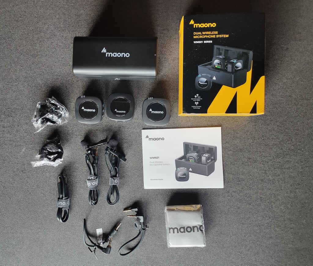 A vezeték nélküli mikrofonrendszer új technológiai trend. Egy adóval érkezik, amely megszerzi az audio -t, majd egy adott vezeték nélküli frekvenciasávon keresztül továbbítja a vevőnek (2,4 Hz a Maono WM821 esetében), és szinkronizálja a videó rögzítésével. A WM821 éppen ezt teszi, egy vevővel és két adóval - lehetővé téve, hogy két embert egyszerre rögzítsen.