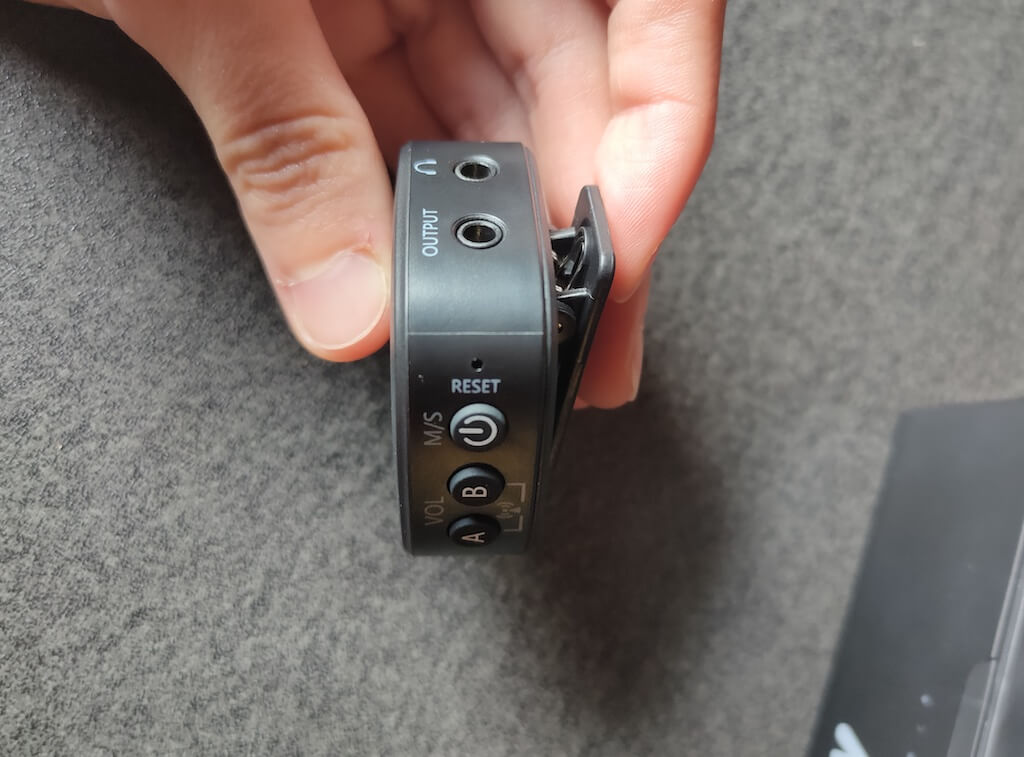 Amikor először kapja meg a kezét a Maono WM821 -en, észreveszi, mennyire stílusos az összes alkatrész (beleértve a töltési tokot). A tokon belül két adót és egy vevőt talál. Mindegyikük könnyűnek érzi magát, és hátul van egy bilincs, amelyet a ruháinak rögzítéséhez használhat.
