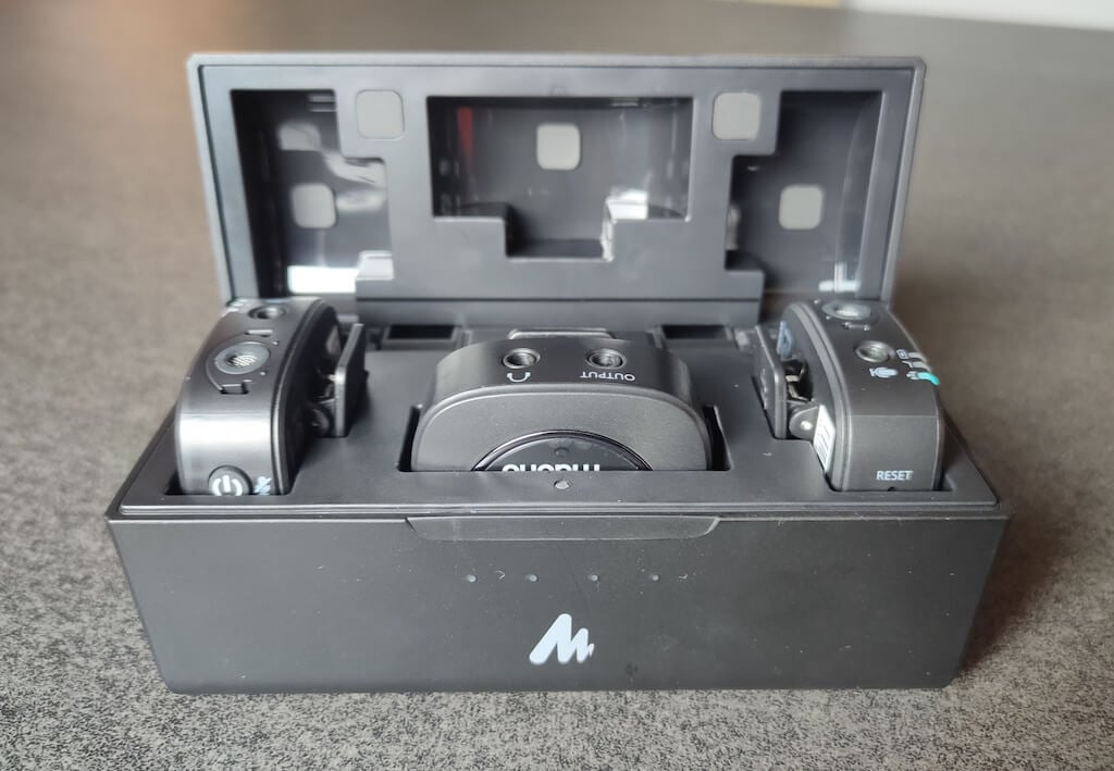 Már megemlítettük a WM821 kiváló akkumulátor -élettartamát akár 10 órás munkaig. Maono szerint az adók még hosszabb ideig is tarthatnak - akár 12 óráig egyetlen töltéssel. A töltési esetnek köszönhetően ezeket a számokat megduplázhatja, mielőtt egy tényleges töltőt használna.