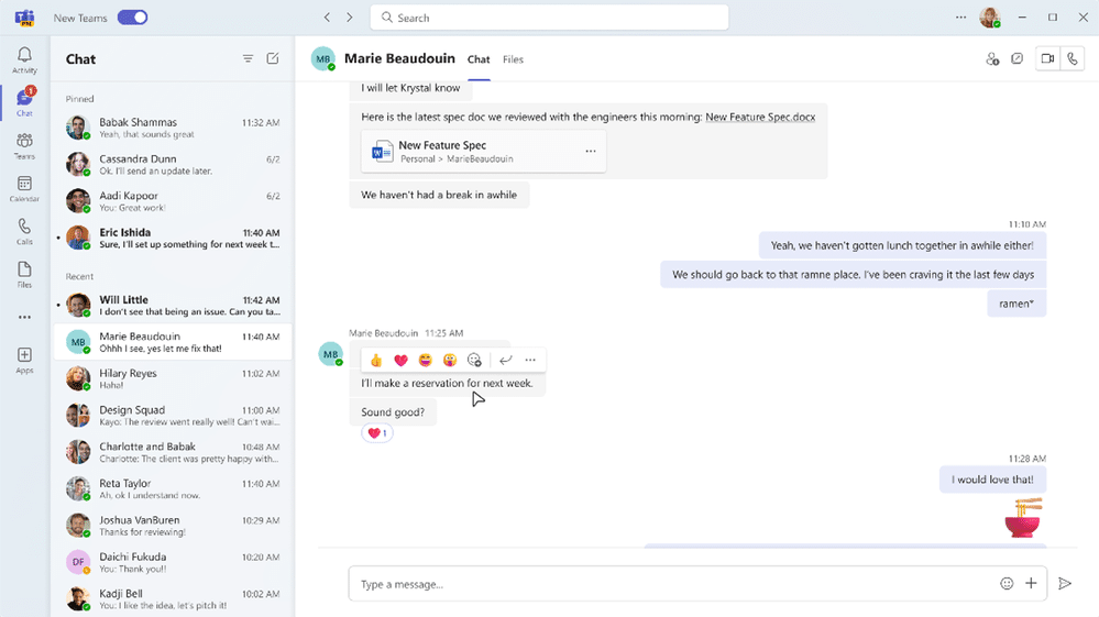 - A csevegés és az együttműködés fejlesztései: Ezek a fejlesztések megkönnyítik a csapatok másokkal való együttműködését, ideértve a csevegőkben való @Mention emberek képességét, és megnézni, ki az online.