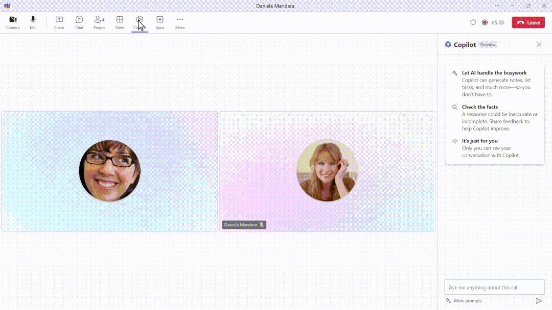 - Kérdéses válaszadás: Copilot felhasználható a telefonhívásokkal kapcsolatos kérdések megválaszolására. Ez segíthet a felhasználóknak tisztázni valamit, amit megvitattak, vagy többet megtudhat egy témáról.