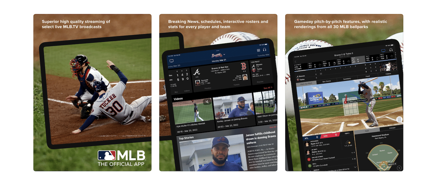 Az MLB alkalmazás letölthető ittApp Storealkalmazáson belüli előfizetési csomagokkal a teljes funkciók eléréséhez. Kompatibilis az iPhone, iPad, iPod touch, Apple Silicon Mac és Apple TV készülékekkel.