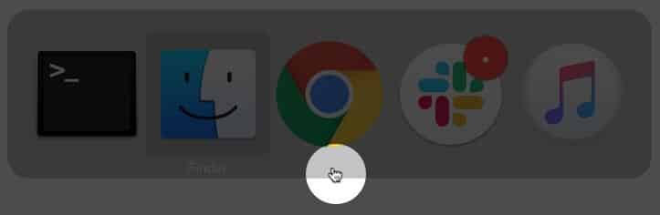 Bár nem látja az egérmutatót, továbbra is használhatja úgy, mintha tudná. Vigye le a láthatatlan kurzort a Dockhoz. Egyszer az eltűntaz egérmutató a Dock felett lebeg, újra megjelenik.