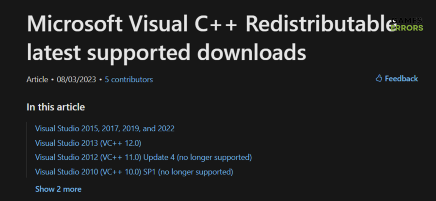 3. Frissítse a Visual C ++ újraelosztható csomagot