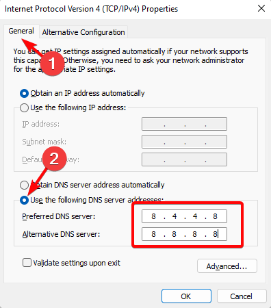 Válassza kiHasználja a következő DNS-kiszolgáló címeketés írja be a következőket: