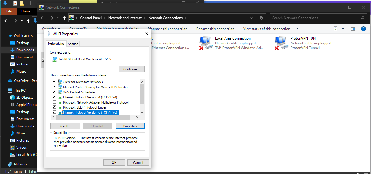 4. Törölje a „Internet Protocol 6. verzió (TCP/IPv6)” jelölést, majd kattintson az OK gombra.