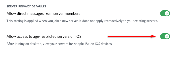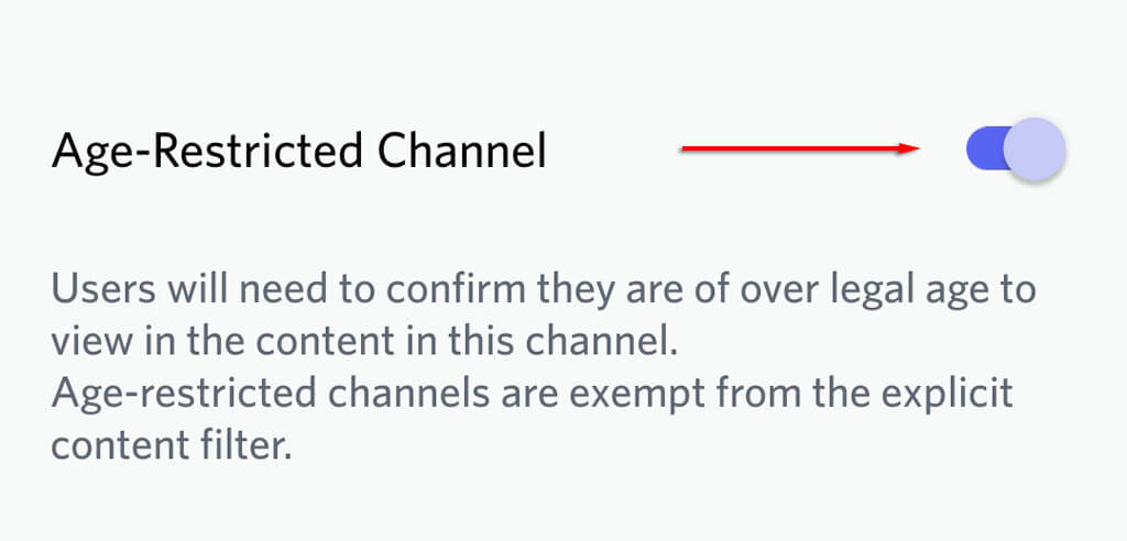 Jegyzet:A kiszolgálótulajdonosok teljes NSFW-szervereket hozhatnak létre, ha módosítja ezt a beállítást az egyes csatornáinál.