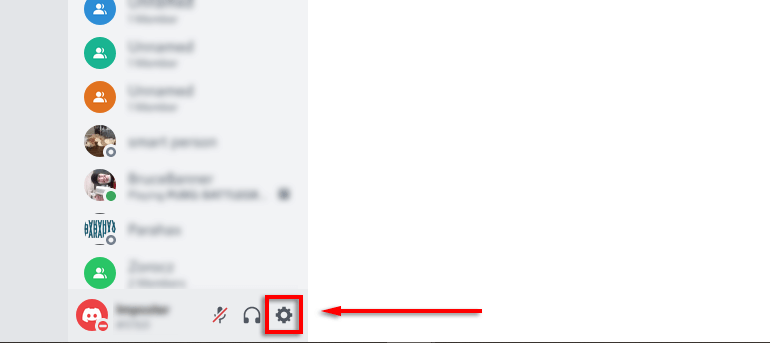 - A Discordban kattintson a gombraFelhasználói beállítások(a fogaskerék ikon a képernyő bal alsó sarkában).