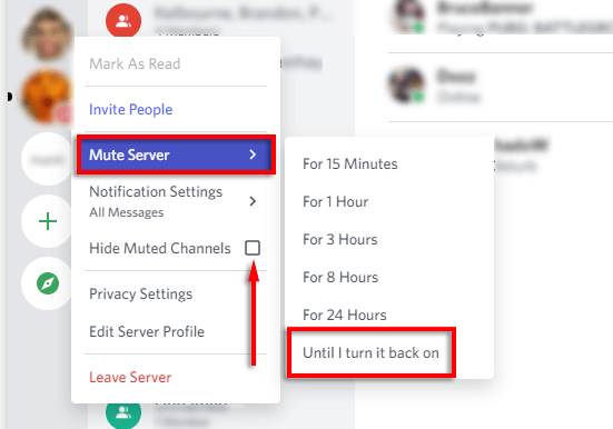Jegyzet:Sajnos nincs beépített beállítás az NSFW-csatornák blokkolására, ha elmúltál 18. Azonban elnémíthatod a csatornát, és elrejtheted a némított csatornákat, hogy ne jelenjenek meg a csatornalistádban. Ehhez kattintson a jobb gombbal a kiszolgálóra, és válassza kiNéma. Ezután kattintson ismét a jobb gombbal a szerver ikonra, és válassza kiElnémított csatornák elrejtése.